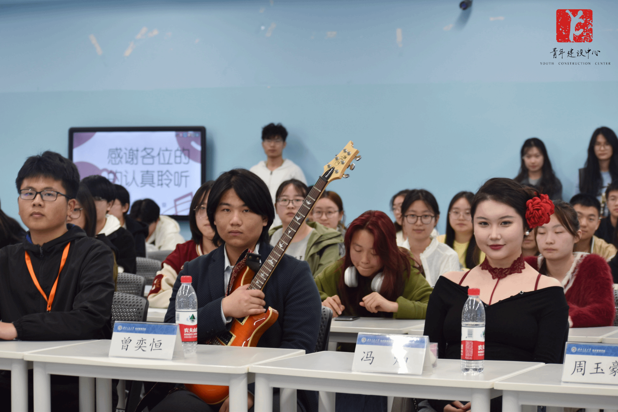 随后主持人通过开展听歌识曲环节,引导团干部们深入音乐世界。接着主讲人介绍了一些吉他音乐的创作背景,讲述了一个又一个跌宕起伏的故事,让团干部们充分领略到吉他音乐独特的魅力。最后在优秀音乐作品旋律中结束本次培训。