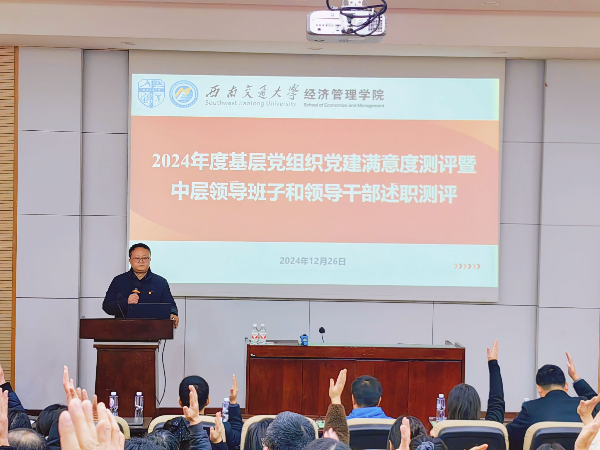 2024年12月26日下午在0215报告厅,按照学校工作部署,36365线路检测中心no1召开2024年度党建满意度测评和中层领导干部考评暨2024年双代会。学院党政领导班子全体成员、学院教职工和学生党员代表参加测评,会议由学院党委书记郭强主持。