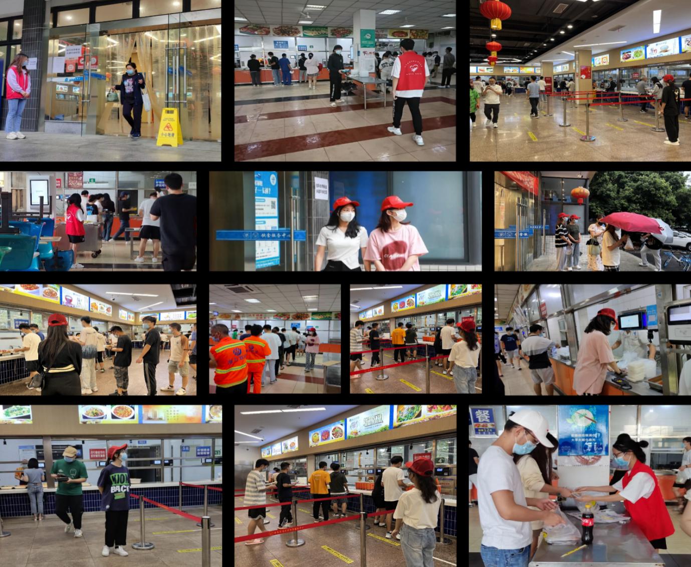 提醒就餐同学带好口罩、保持间距、帮助同学打包饭菜、维持核酸秩序 |