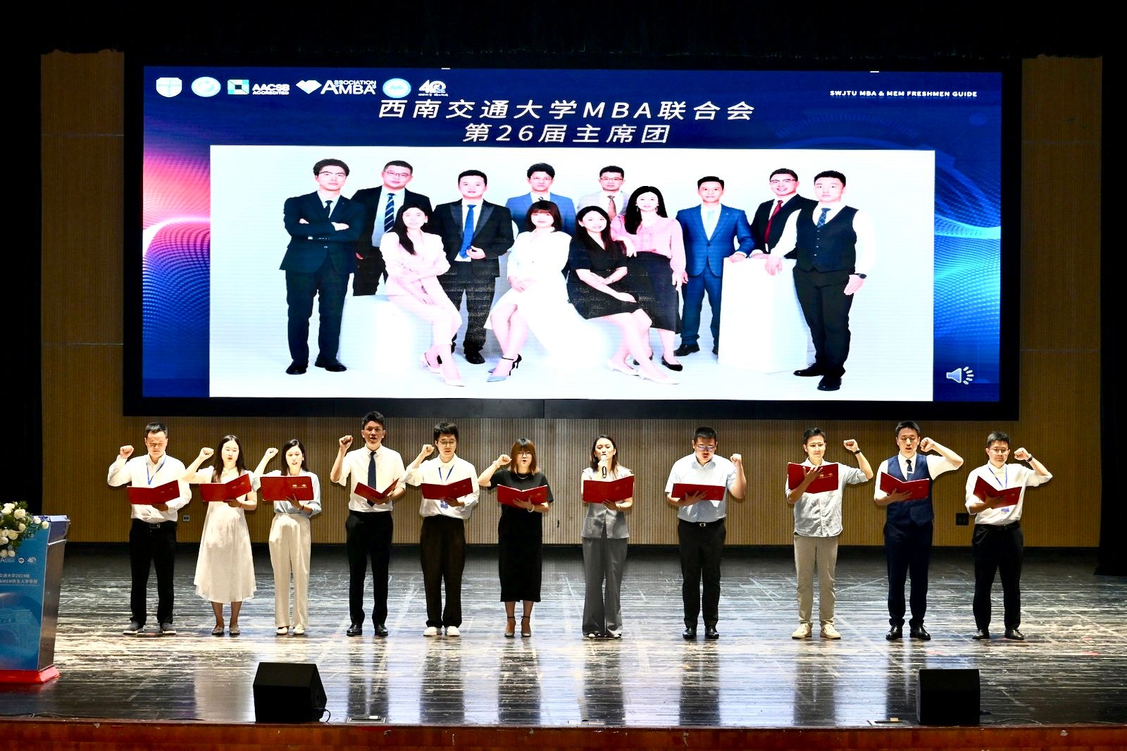 第26届MBA联合会主席陈文莉代表主席团发言,并分享了对MBA联合会的认识以及未来发展规划,她表示西南交通大学MBA联合会将继续坚持以文化传承、智慧赋能、链接共生的核心理念,秉承拓宽横向交流平台的对内服务和持续增强交大MBA影响力的对外发声职能,打造属于西南交大MBA人共同成长的平台。