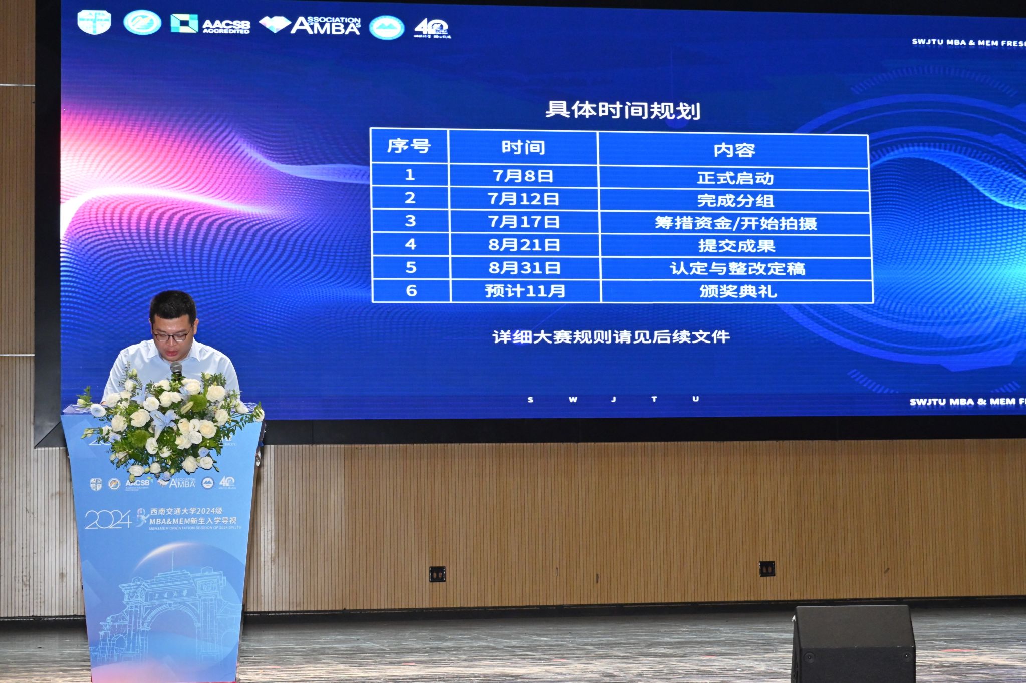 第26届MBA联合会执行主席邓超对西南交通大学微电影大赛的创办初衷、发展历程以及近年来赛事的情况做了详细介绍,并隆重揭开了第八届微电影大赛的主题——历久·弥新,第八届微电影大赛正式启动。2024级学生将通过随机分组方式,围绕大赛主题,自行创作并完成整部电影从编剧、演员、导演、摄影、后期等全过程工作。最佳男女主角、最佳导演、优秀影片、优秀剧本等多个奖项将于11月微电影颁奖典礼公布。