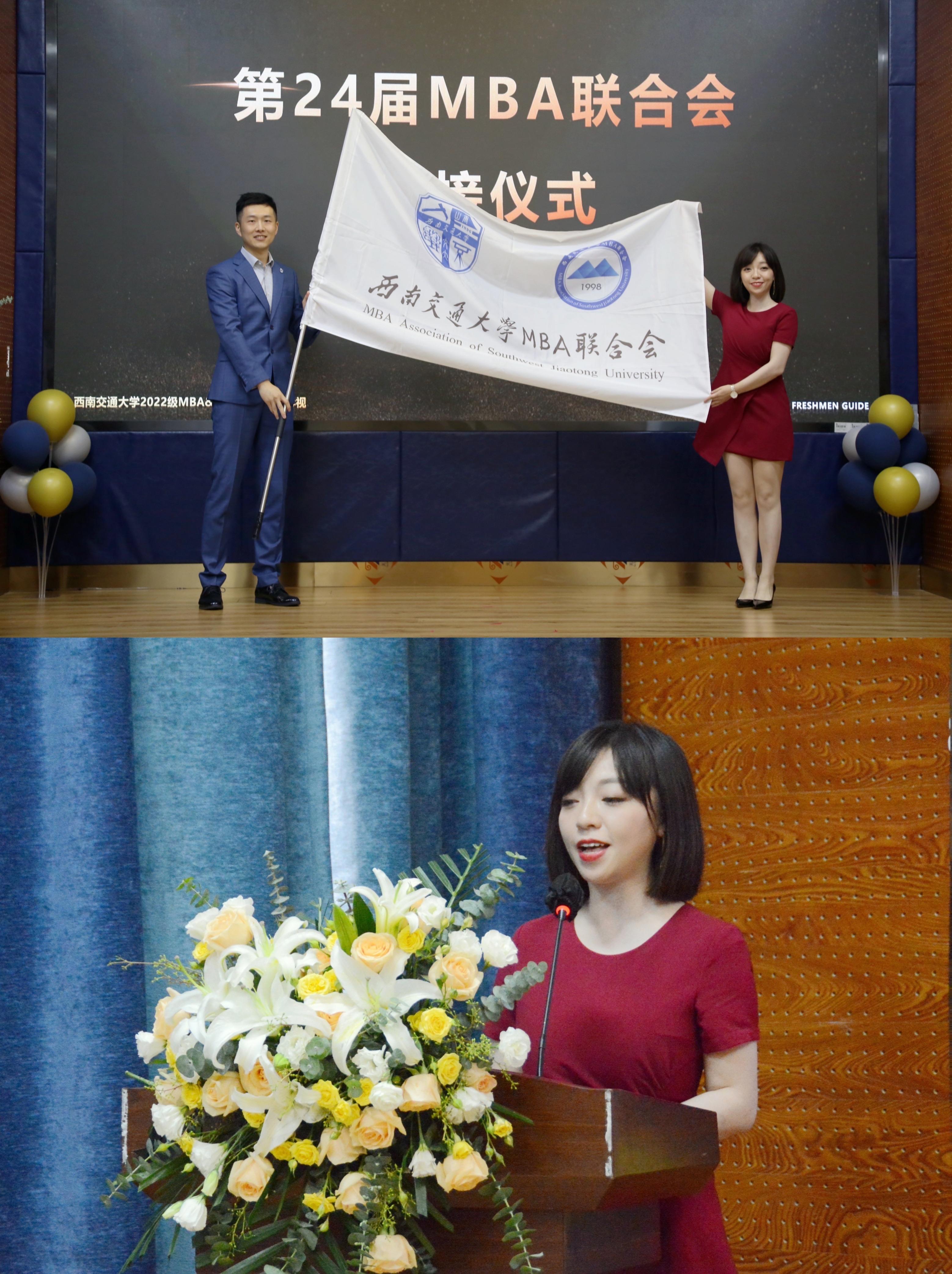 西南交通大学MBA联合会交接仪式环节中,第23届MBA联合会主席范雪鹏将代表责任和荣誉的会旗郑重地交接给了第24届MBA联合会主席郑雨菡。第23届MBA联合会主席范雪鹏对MBA联合会过去一年的工作进行总结,第24届MBA联合会主席郑雨菡分享了对MBA联合会的认识以及未来发展规划,并进行宣传招新。