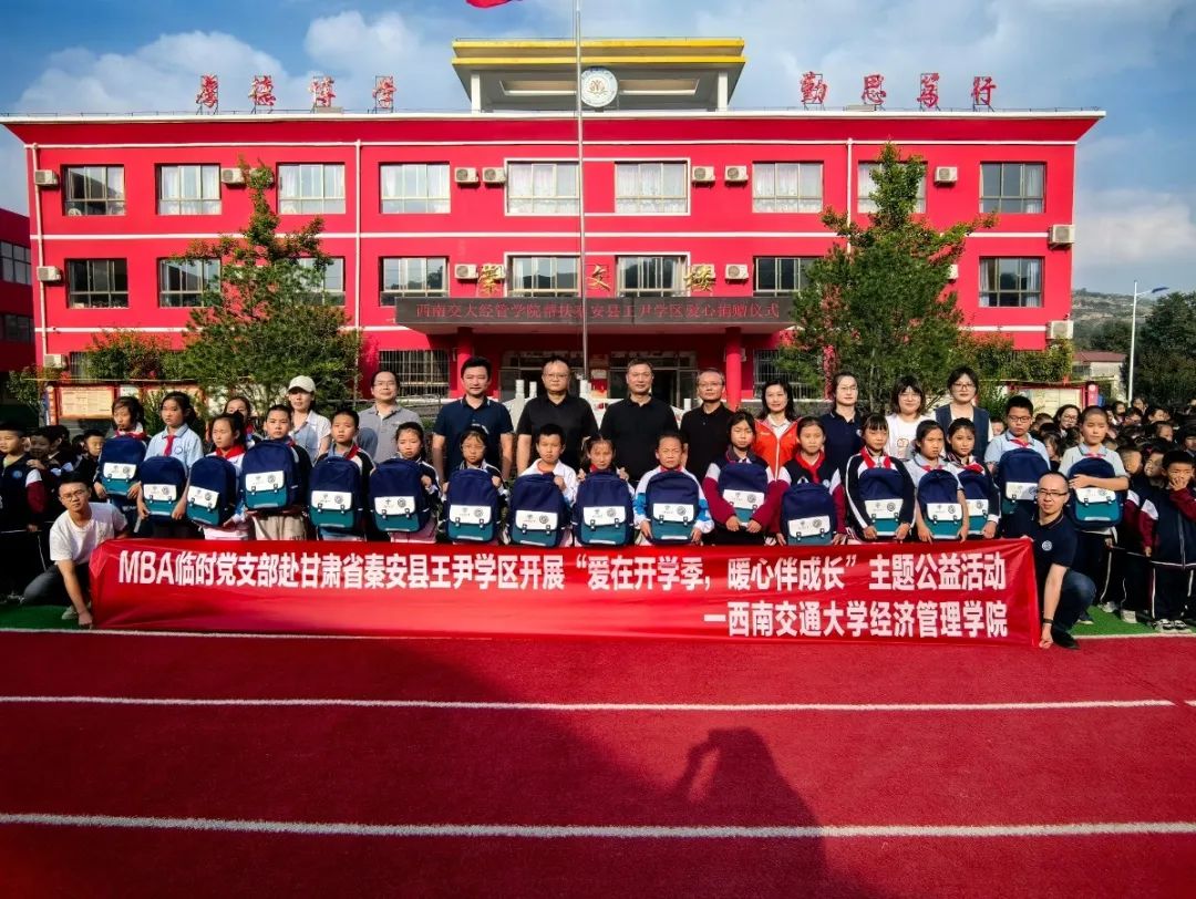 2024年是中华人民共和国成立75周年。在国庆节来临之际,西南交通大学36365线路检测中心no1积极响应党中央、国务院关于乡村振兴的战略号召,学院党委书记郭强,党委副书记、纪委书记晏理斌,市场学系教授蒋玉石,综合事务办公室主任何鹏,专业学位教育中心副主任李洪辉及MBA临时党支部学生代表于9月27日深入甘肃省秦安县王尹镇,开展了“爱在开学季,暖心伴成长”主题公益活动,为祖国的生日献上一份特别的贺礼。西南交通大学挂职干部、秦安县副县长章春军和驻王尹镇胡坪村第一书记李勇及王尹学区负责人陪同参加了活动。