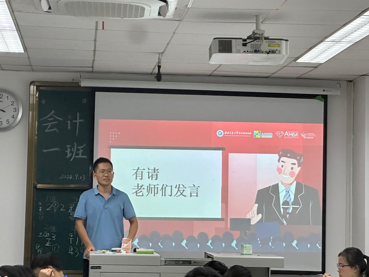 会计一班班导师韩士民、王嘉不仅对会计专业学习技巧进行深度剖析与解读,还提出了对未来专业发展和学生就业前景的展望。两位班导师认为职业发展不是一场以毕业为终点的赛场,大二年级对未来职业规划有困惑是正常的,这种迷茫并不会使人生始终停滞不前,只要坚持学习,多实习多体验,最终都会看到自己人生的赛道。