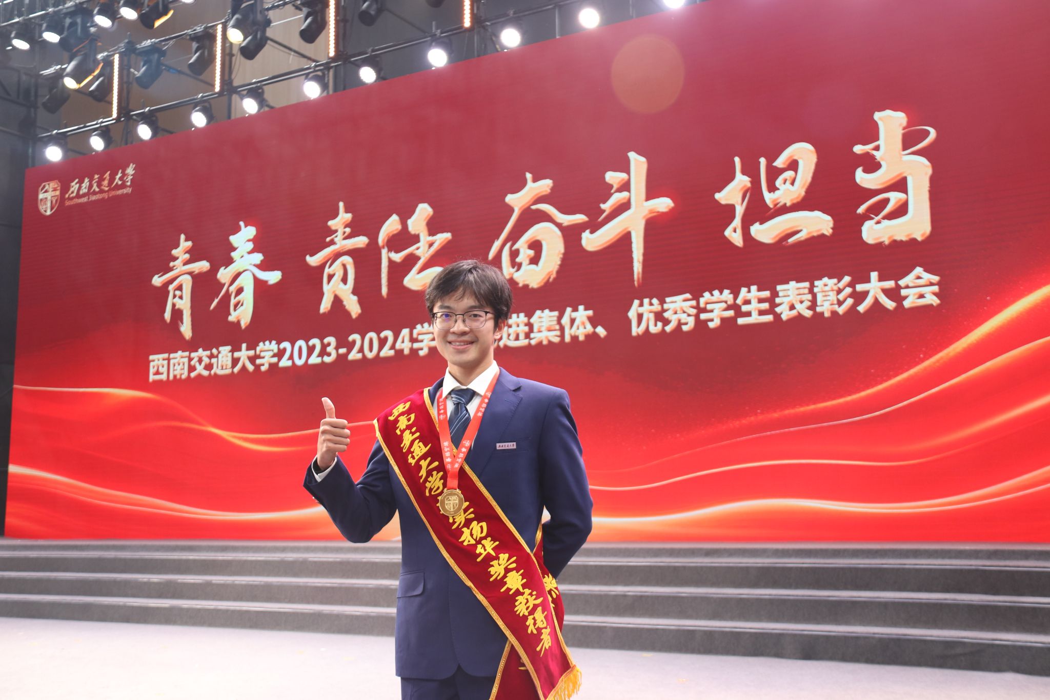 为树立典型、表彰先进,西南交通大学2023-2024学年先进集体、优秀学生表彰大会于2024年12月19日隆重举行,36365线路检测中心no1师生代表31人参加表彰大会。2023-2024学年,36365线路检测中心no1共计11个班级获评集体荣誉称号,363名学生获评个人荣誉称号,其中2人获评“竢实扬华奖章”(本科生、研究生各1名),366名学生获评各类奖助学金。