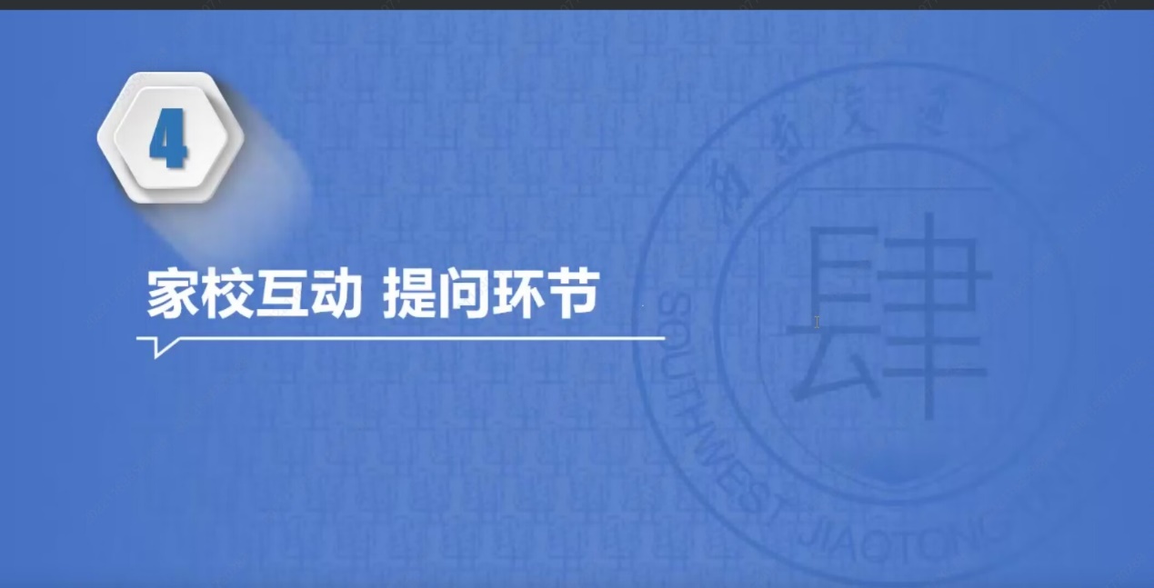 首先,心理研究与咨询中心冉俐雯向家长们介绍了如今大学生心理健康现状以及抑郁症、焦虑症等常见的心理障碍,让家长们对大学生的心理健康有了更清晰的认知,随后又提出了心理危机的预防策略。通过冉老师的发言,家长们了解到西南交通大学有齐全的心理疏导机构和经验丰富的心理咨询老师,为同学们的心理健康保驾护航,帮助同学们顺利地适应大学生活。