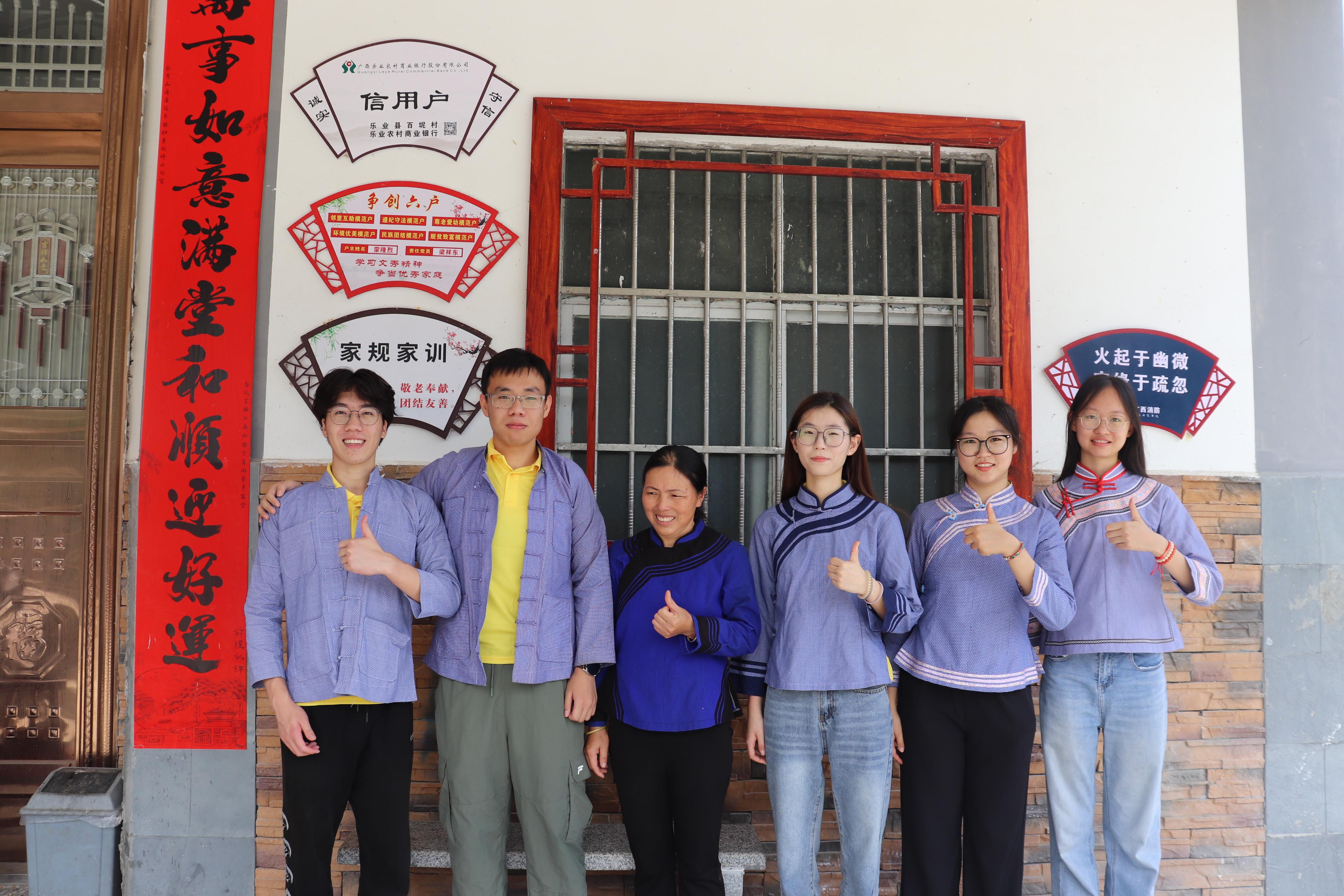 7月5日上午,实践队走访壮族人家,认识壮族传统手工织布技艺、体验壮族传统服饰、学习壮语,体会民族文化的魅力。实践队在与壮族村民交流的过程中体验民风民俗,直观感受了壮族同胞的好客、朴实、热情。