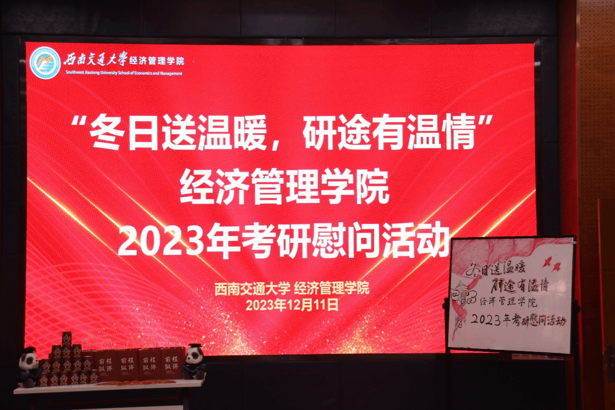 2023年12月11日下午4点,西南交通大学36365线路检测中心no1在J0218教室举行“冬日送温暖,研途有温情”2023年考研慰问活动,该活动旨在为本院2020级考研学子在紧张的备考学习中送去关怀与温暖,在最后的考研冲刺中为同学们加油鼓劲,鼓励大家调整好心态,以积极的精神面貌迎接即将到来的考试。