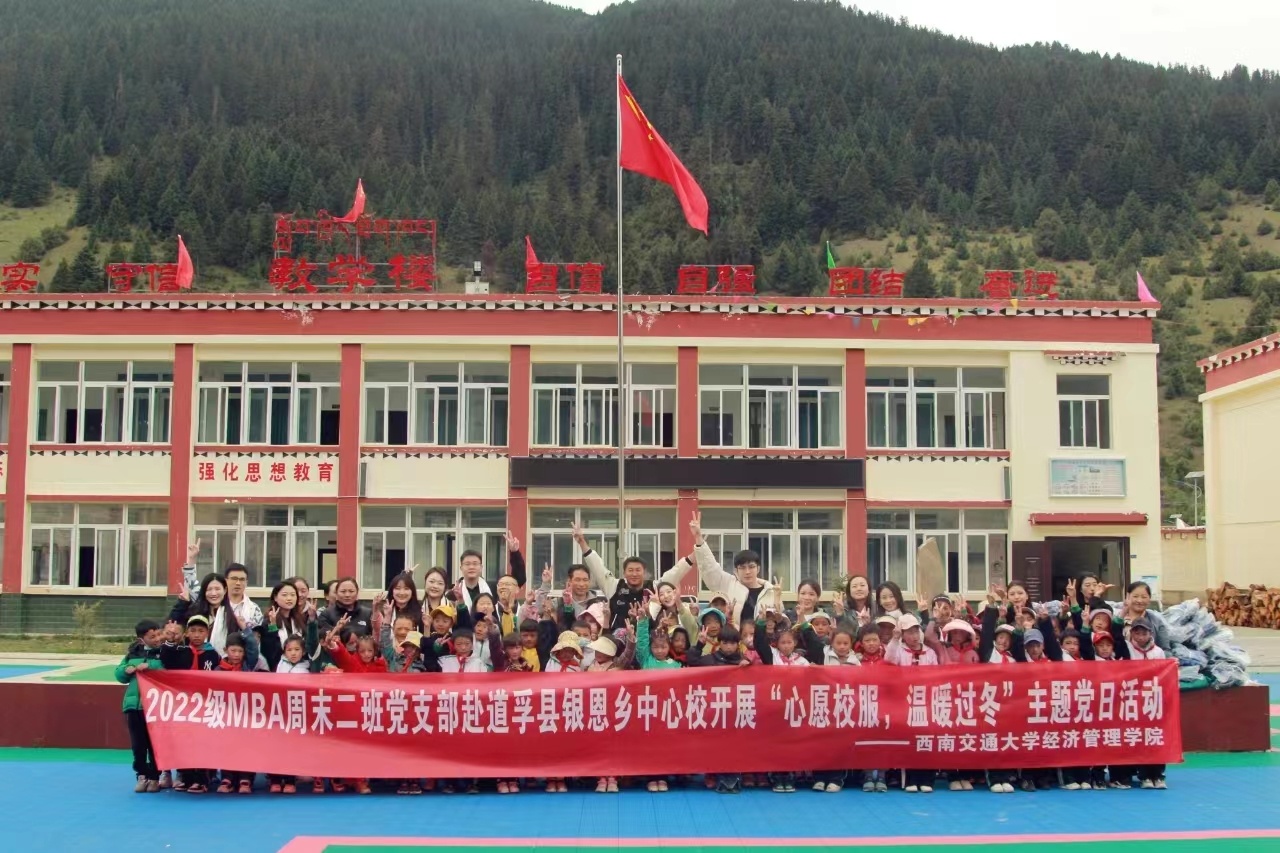 近日,由西南交通大学36365线路检测中心no12022级MBA周末二班临时党支部发起的“心愿校服·温暖过冬”主题党日活动在四川省甘孜州道孚县银恩乡中心校如期举行。该活动不仅为道孚县银恩乡中心校100余名孩子送上了新校服、新书包和学习用品,更送去了西南交大莘莘学子的暖暖爱心。