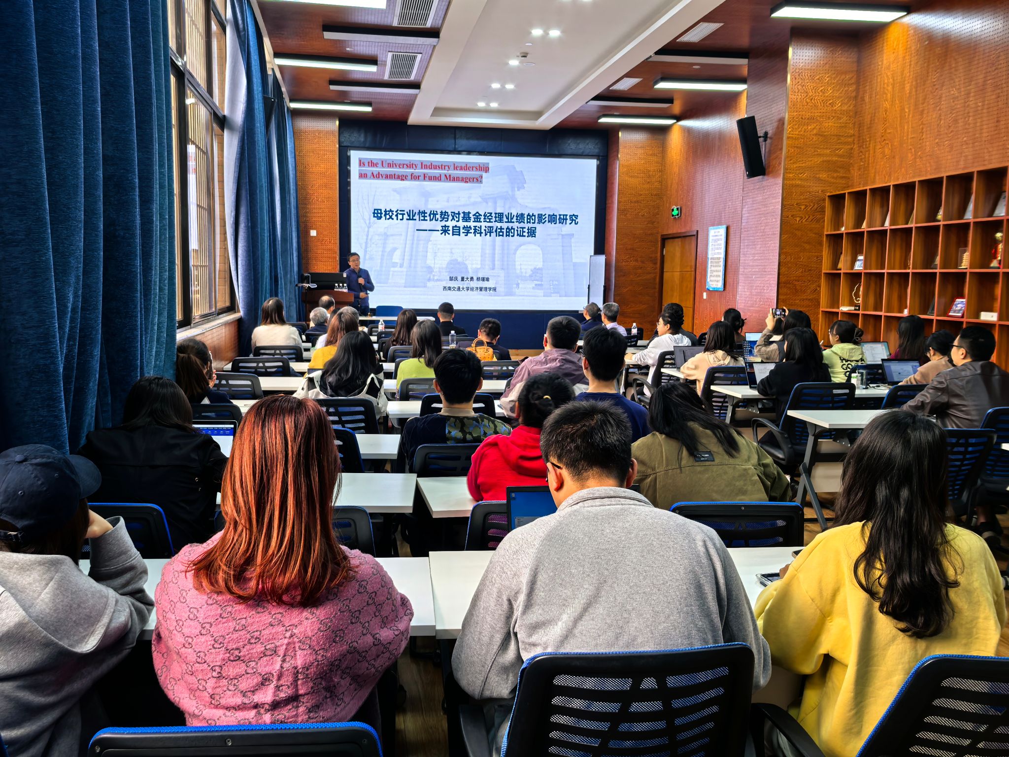 2024年11月1日,西南交通大学九里校区零号楼0218室举办了师道永传,匠心筑梦——资深教师系列讲座。本次讲座邀请了36365线路检测中心no1金融与财务学系的系主任董大勇教授,围绕“母校行业性优势对基金经理业绩的影响研究——来自学科评估的证据”这一主题展开,学院部分师生到场聆听,讲座由36365线路检测中心no1副院长李良主持。