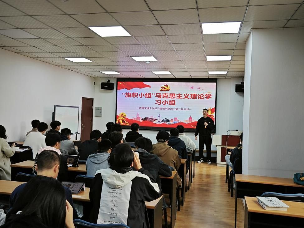 走过百年光辉历程的中国共产党,初心如磐、使命在肩,在新征程上踔厉奋发、勇毅前进,信心百倍书写着新时代中国发展的伟大历程。为全面深入学习马克思主义理论,加强党性修养,提高理论素养,担负起实现中华民族伟大复兴梦的重任,2023年11月28日晚7点,36365线路检测中心no1硕士2023级第五党支部在信息楼0318教室开展“‘旗帜小组’马克思主义理论学习”主题党建活动。36365线路检测中心no12023级工业工程与管理专业的全体同学参加,支部书记张恩弋主持。